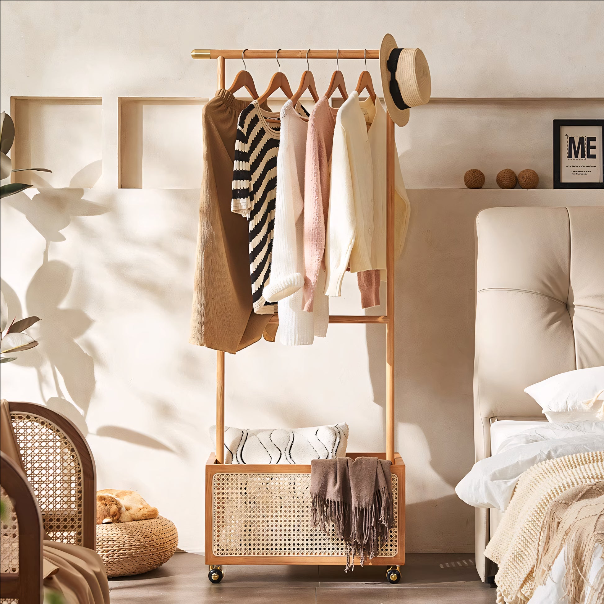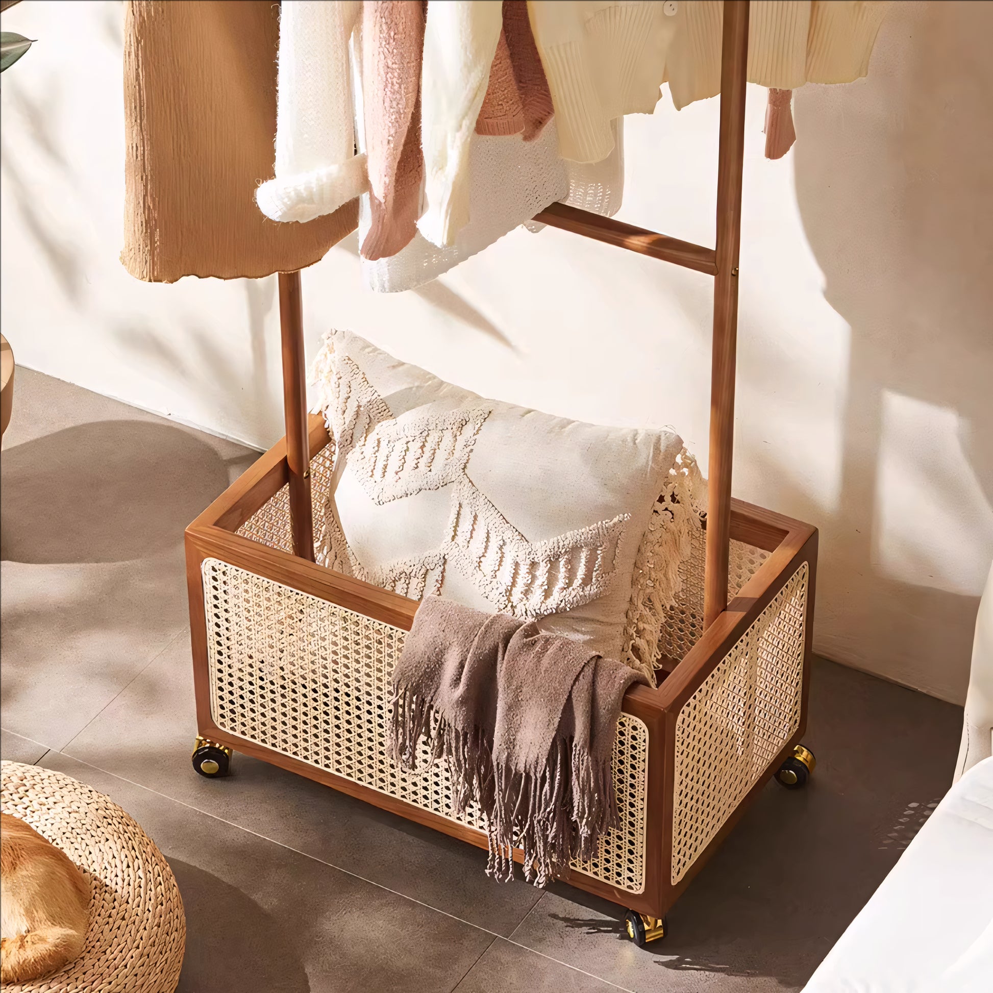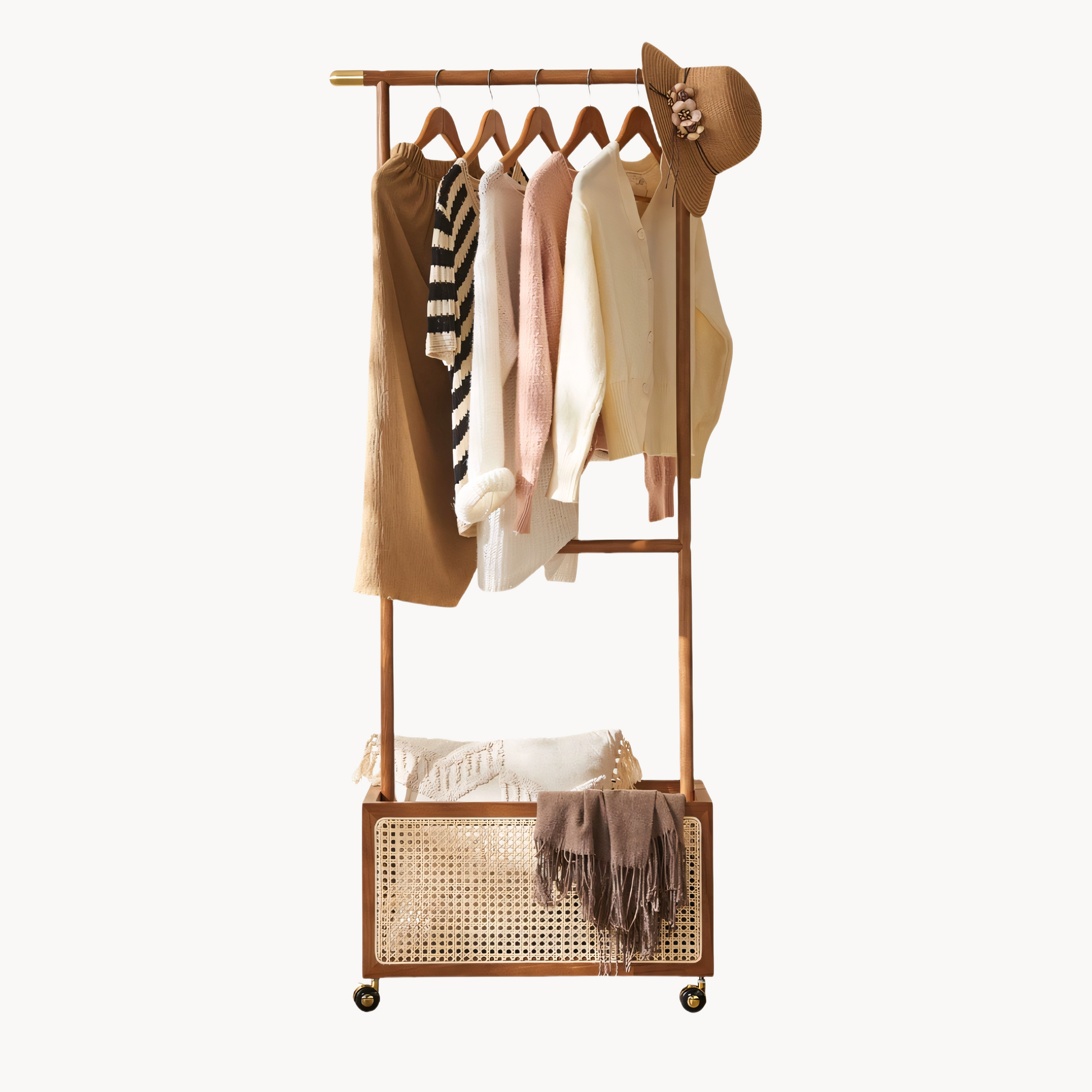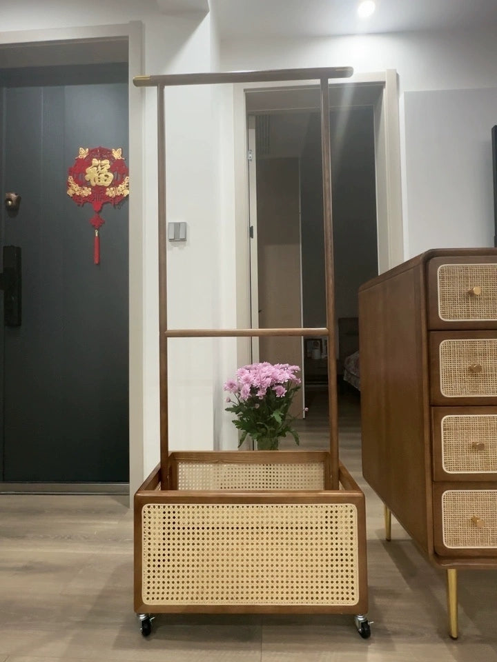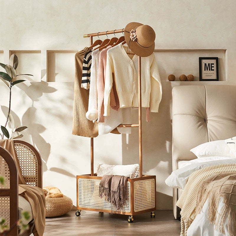 Draris Solid wood coat rack with a basket