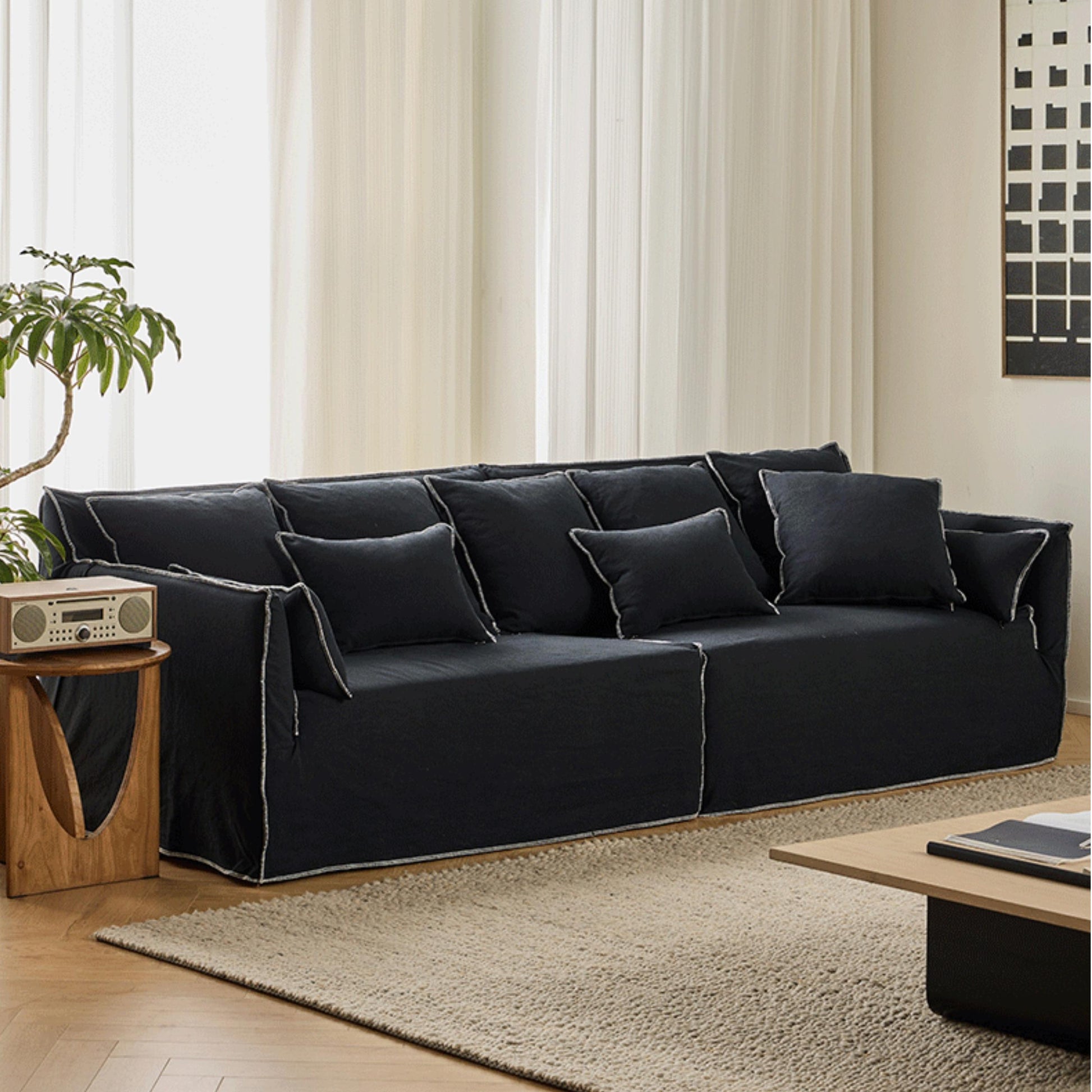 Geema Washable natural linen fabric straight sofa