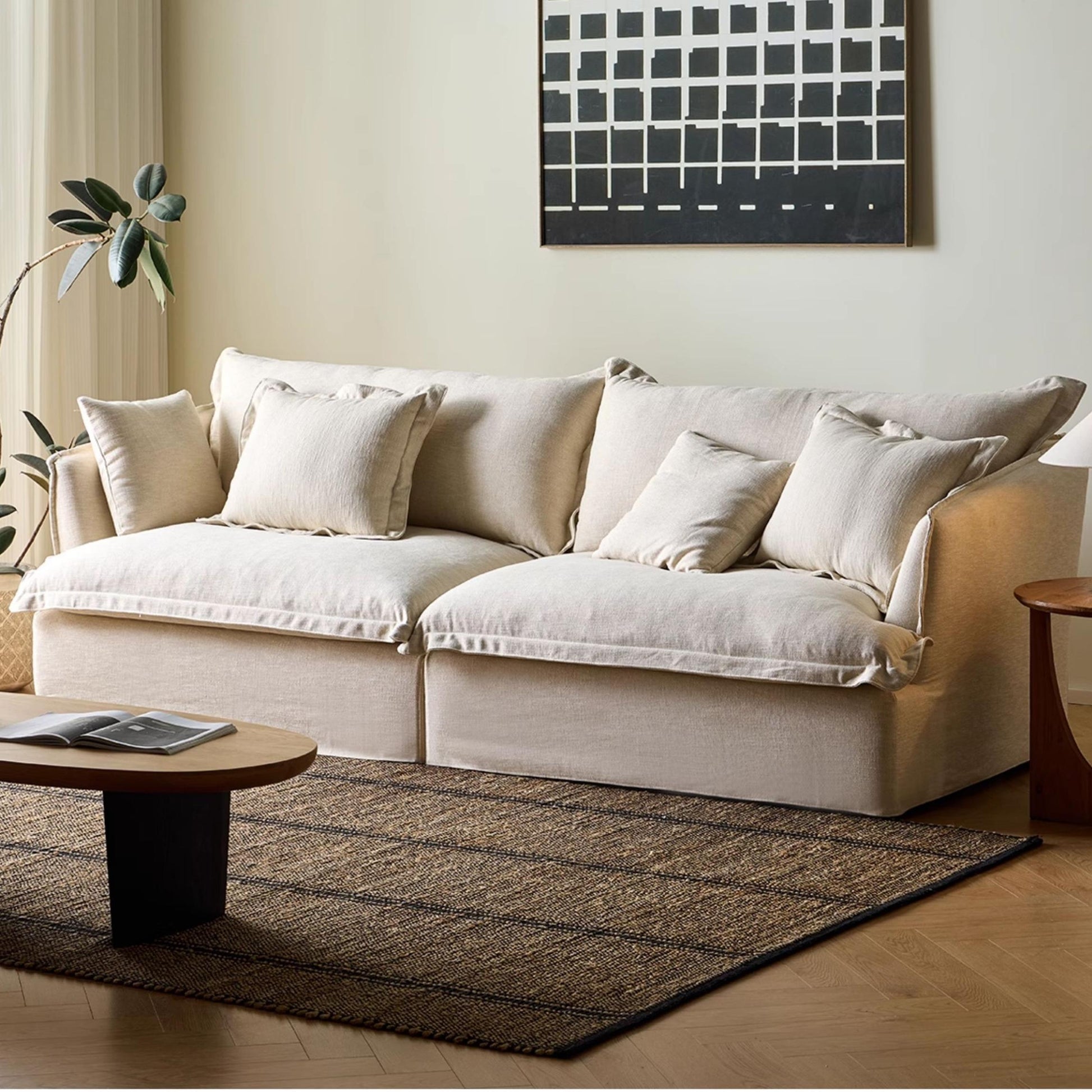 Ignazio Washable natural linen fabric straight sofa