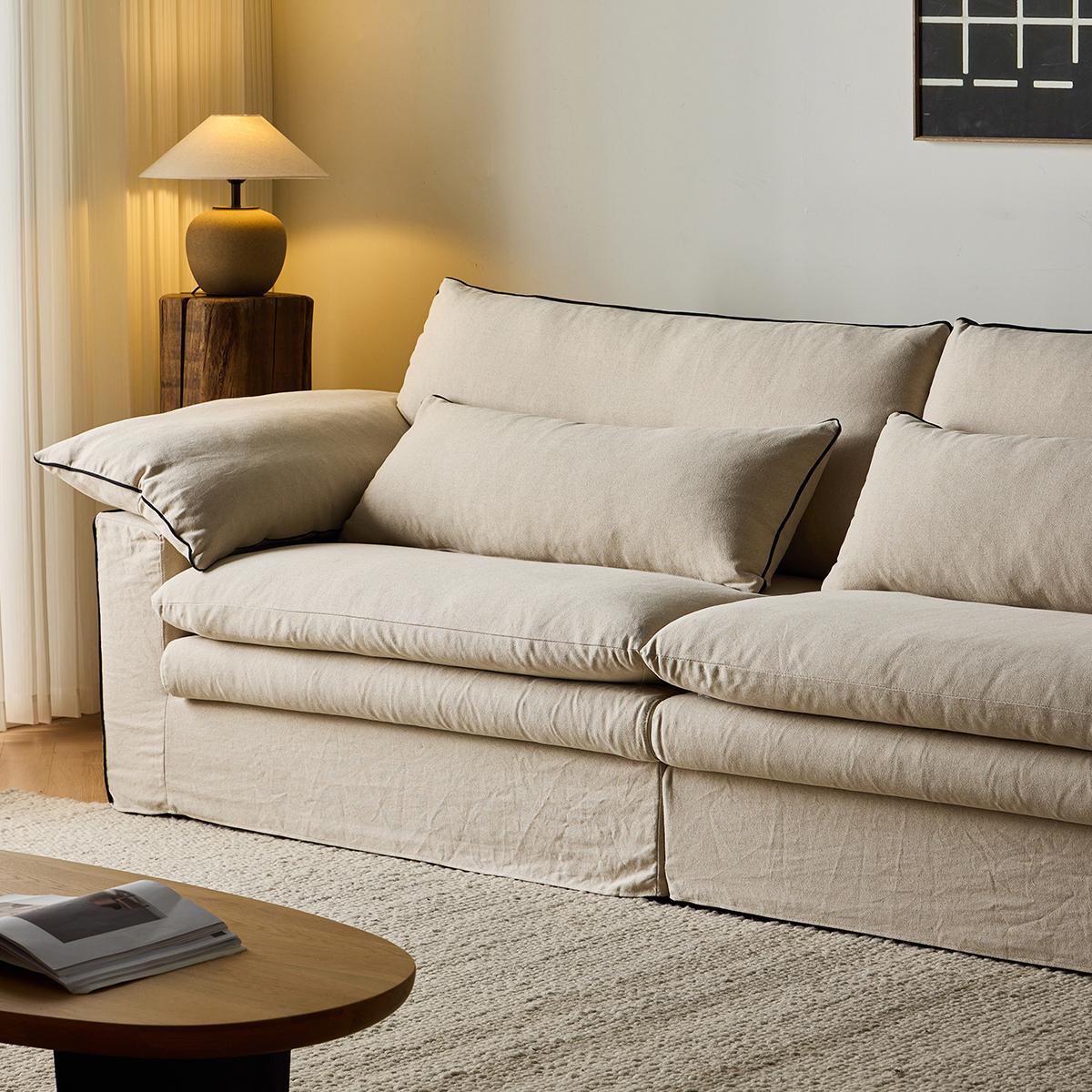 Isap Washable natural linen fabric straight sofa
