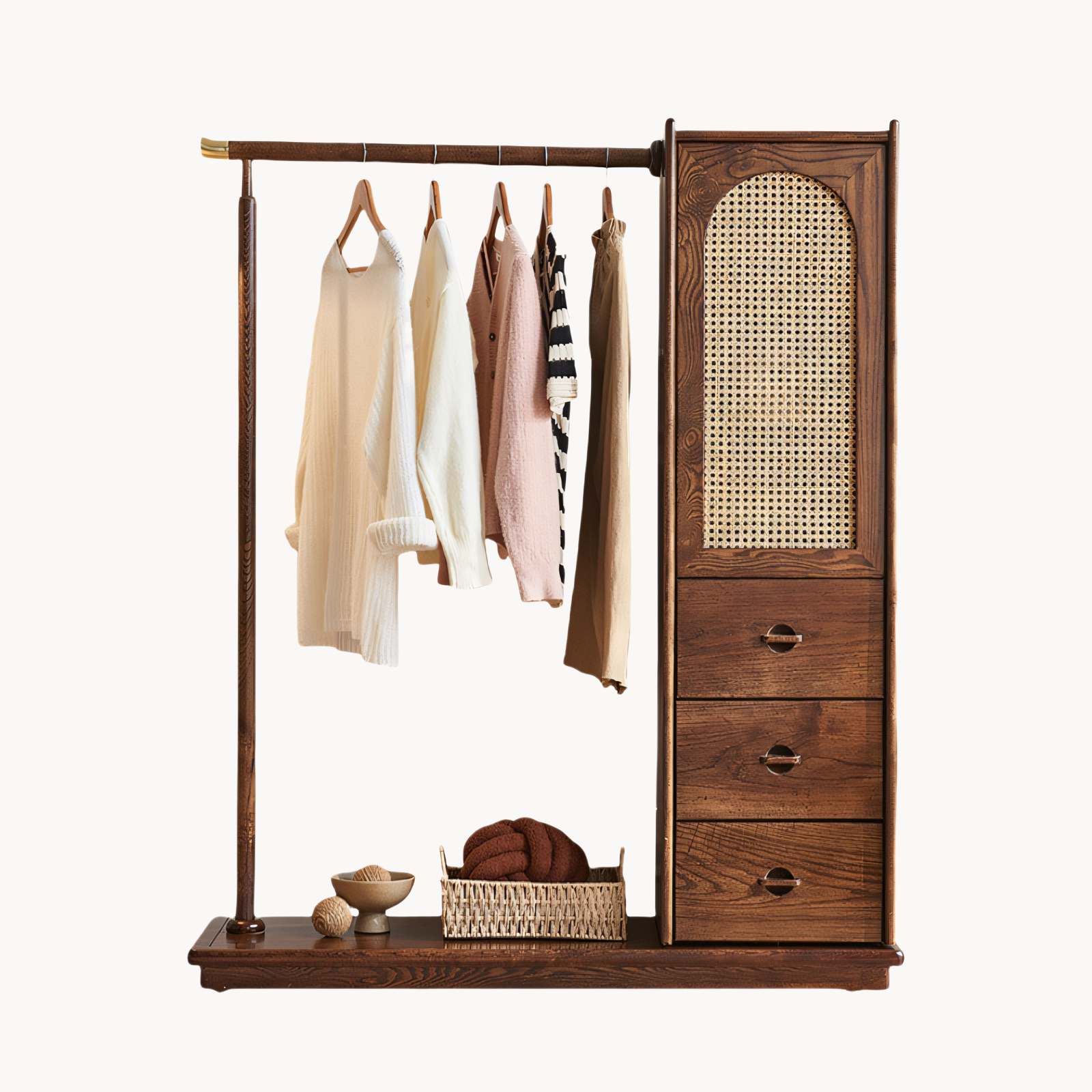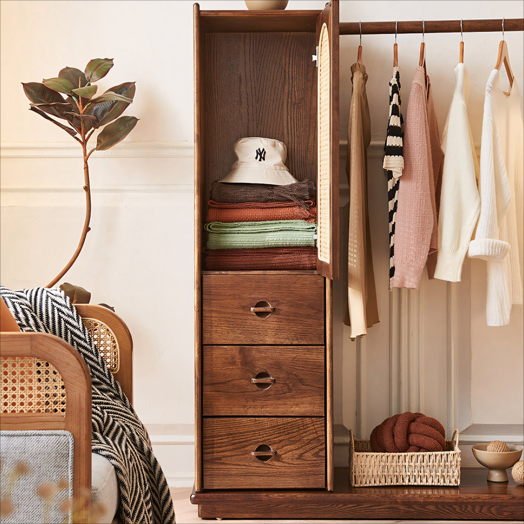 Lyria Solid wood natural rattan wardrobe