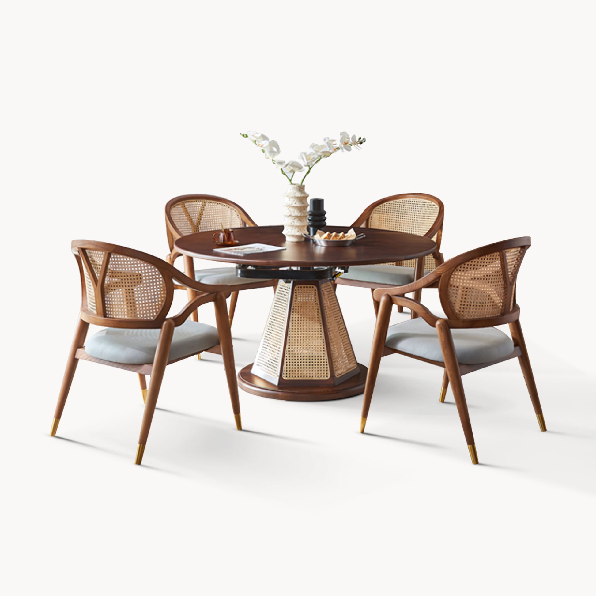 Portocin Ash wood natural rattan round dining set