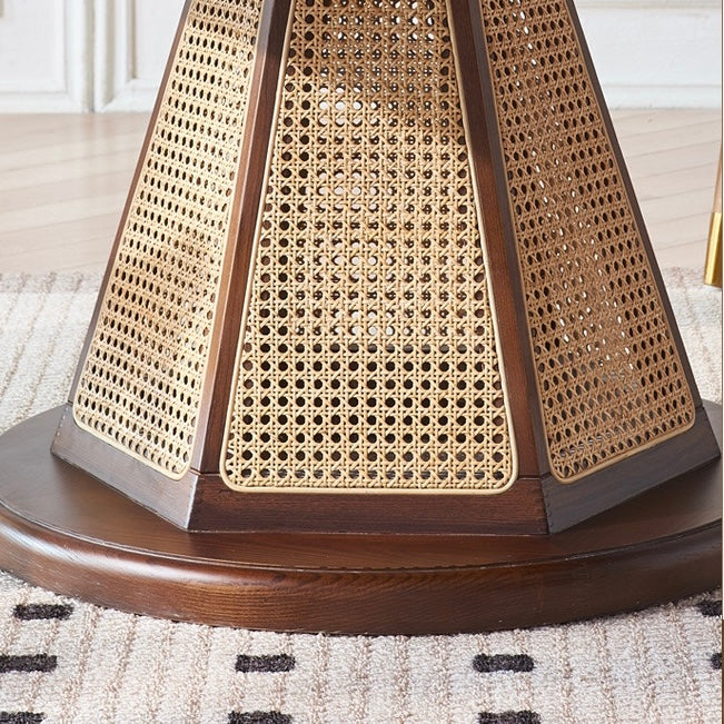 Portocin Ash wood natural rattan round transformable dining table