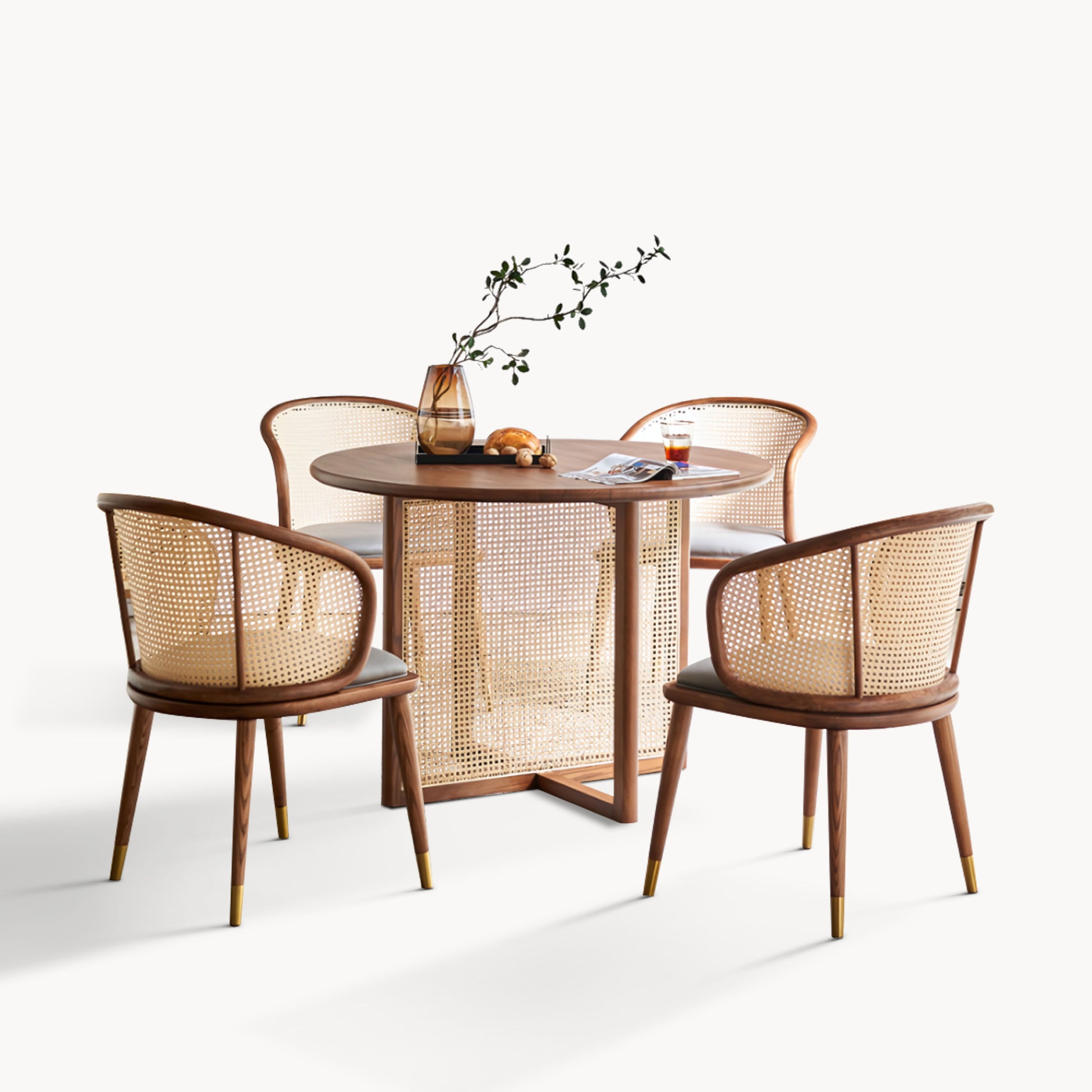Ronilan Ash wood Indonesian natural rattan round dining set