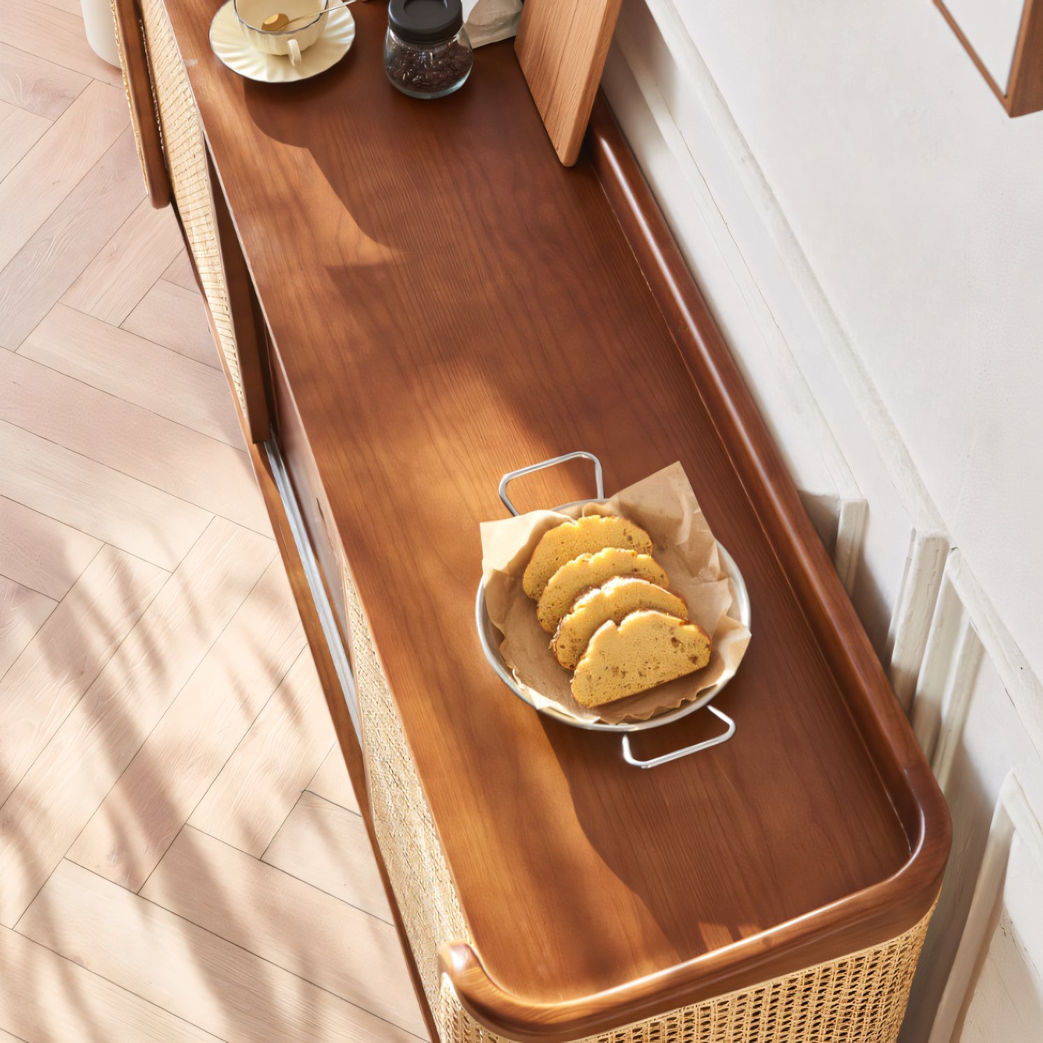 Sarinaly Ash wood natural rattan sideboard