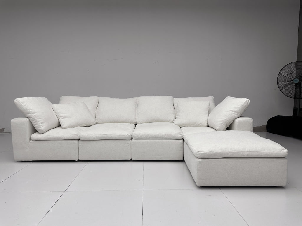 Senaz Washable natural linen fabric straight sofa with ottoman