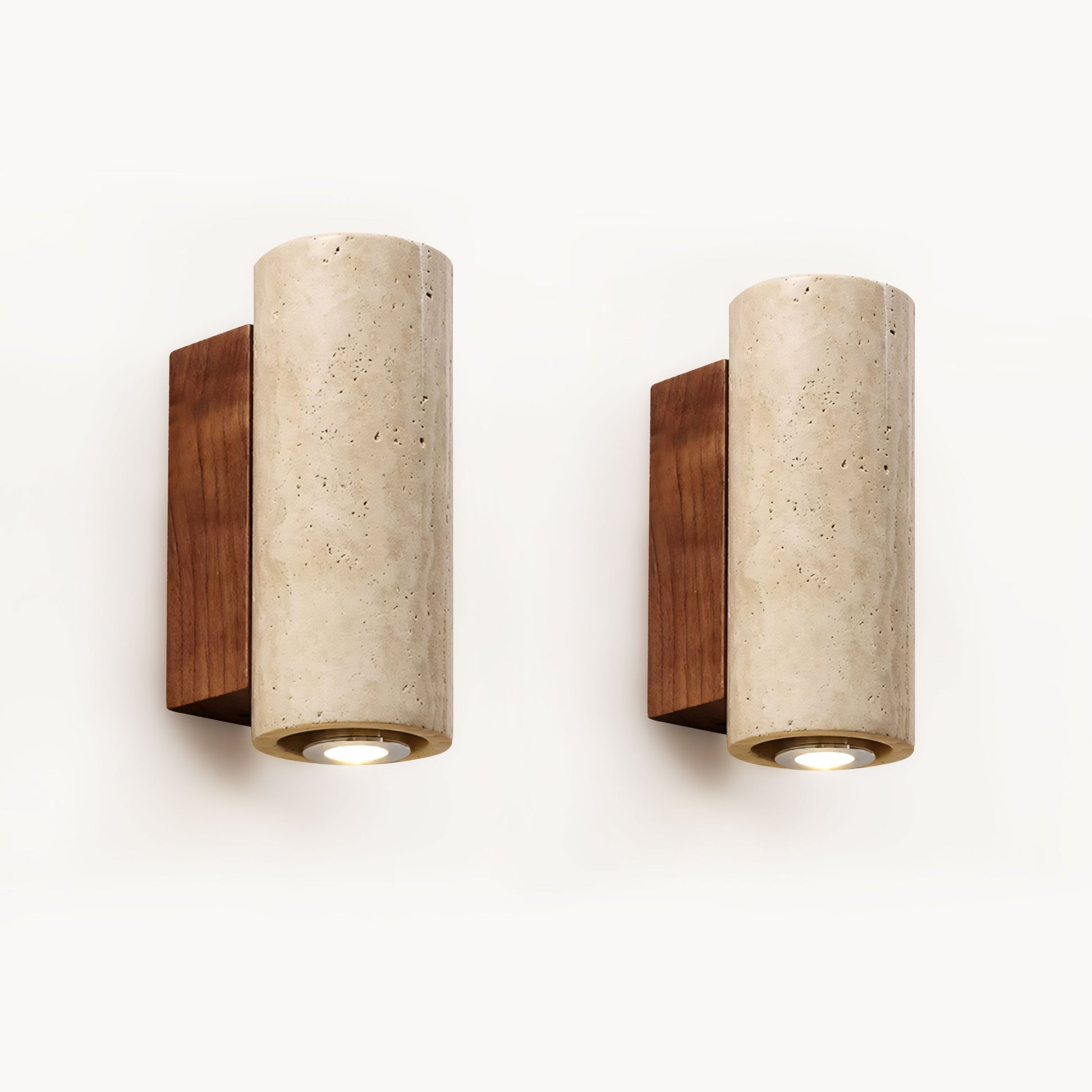 Vicria 2pcs yellow travertine rubberwood wall lights bedside lights-A