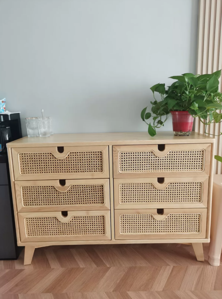 Vilriga Ash wood natural rattan chest of drawers
